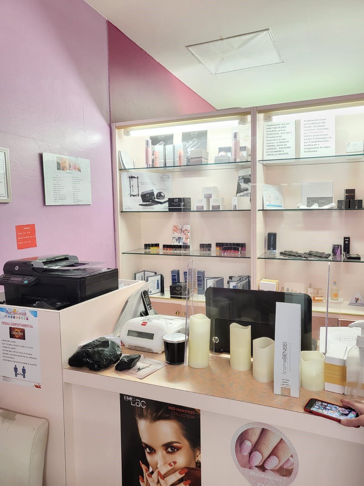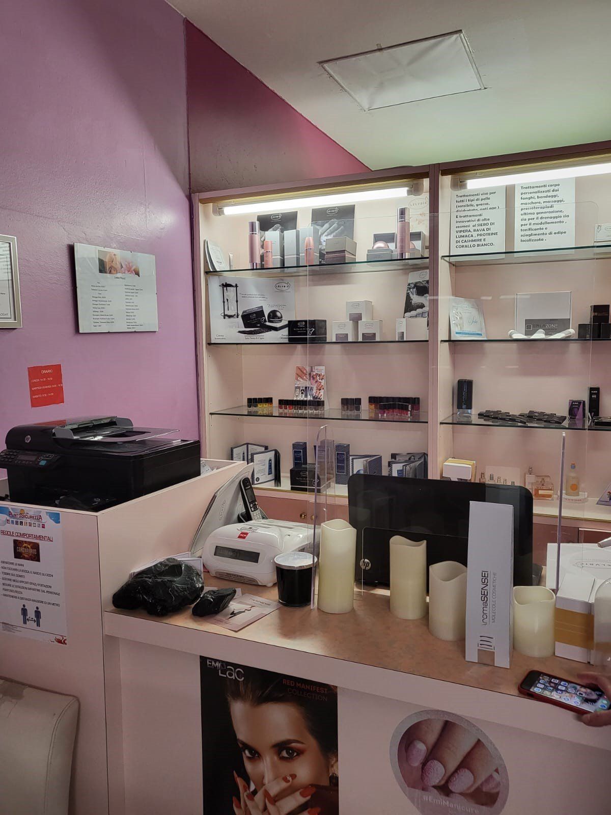 Nel nostro centro estetico vengono utilizzati solo prodotti professionali di alta qualità e marchi garantiti come E.M.I. per manicure, pedicure e smalto semipermanente in svariati colori e le linee Lelvbie, WAVE Make Up. Vengono effettuati vari tipi di massaggio tra cui decontratturante ayurvedico, linfodrenaggio, emolinfatico, rilassante.